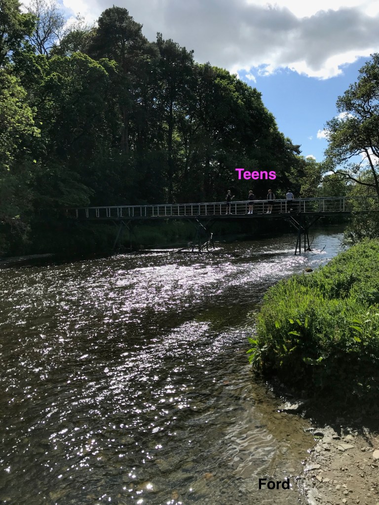 Heading upstream, you then get to another road bridge, but with a more agricultural twist – the Dawyck Mill Bridge. You can see that the bridges are starting to get a bit smaller now, the further upstream we go. I can’t wait until all we are dealing with is a couple of planks over a stream.